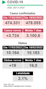 Confira aqui todos os detalhes do boletim epidemiológico Covid e Influenza desta sexta-feira, 18 de fevereiro de 2022.